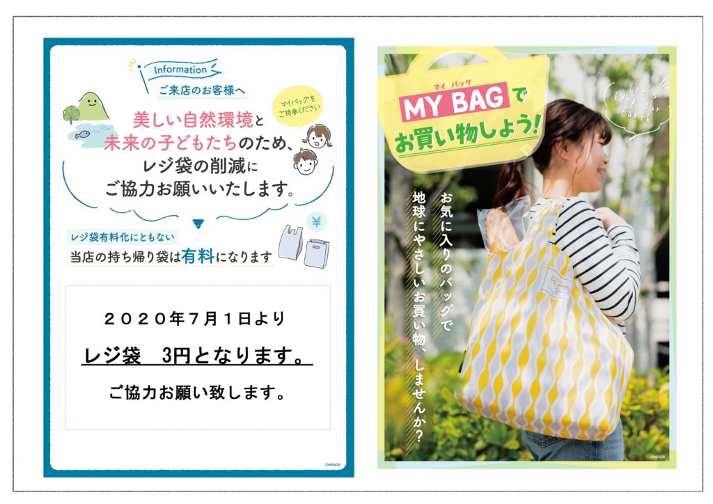 7月1日からレジ袋有料化にともないまして当店でも手提げレジ袋が有料となります。