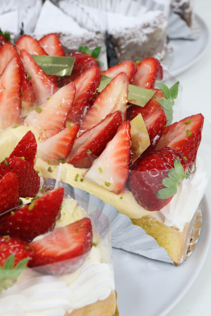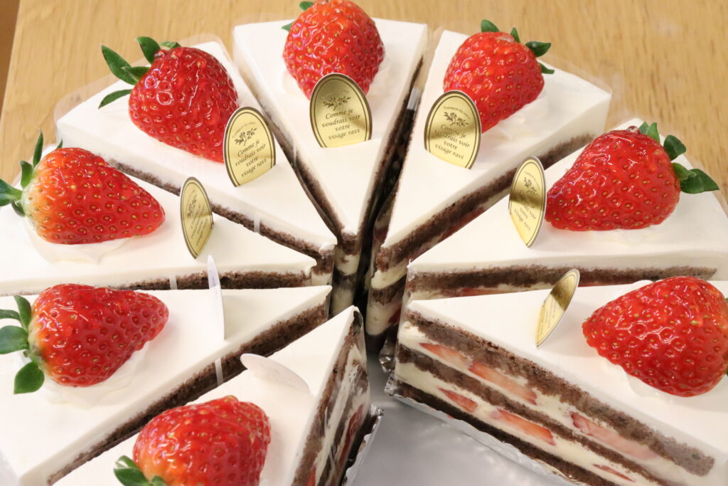 毎週、いちご農園さんから直接仕入れた摘みたての苺を使ってケーキに使用しています。