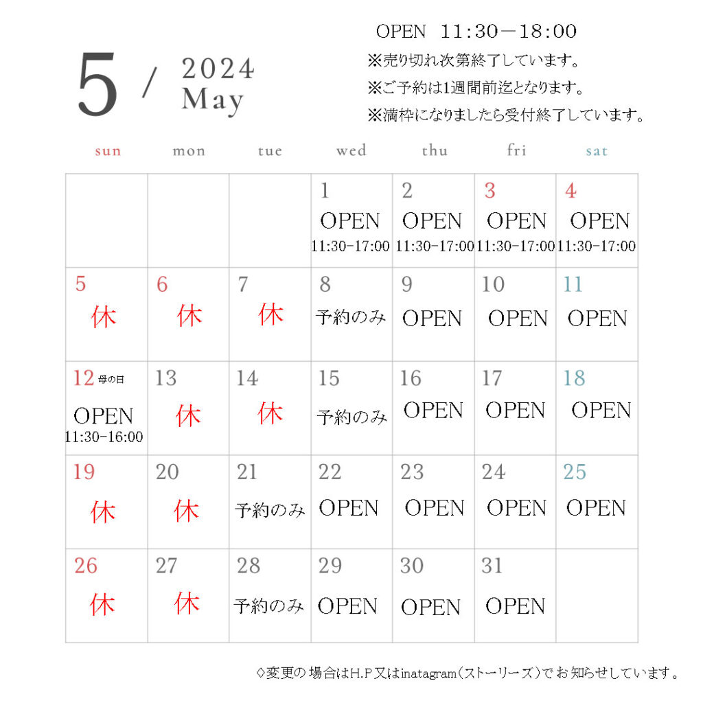◈ 変更の場合はホームページ上、又はinstagram(ストーリーズ)にてお知らせしております。