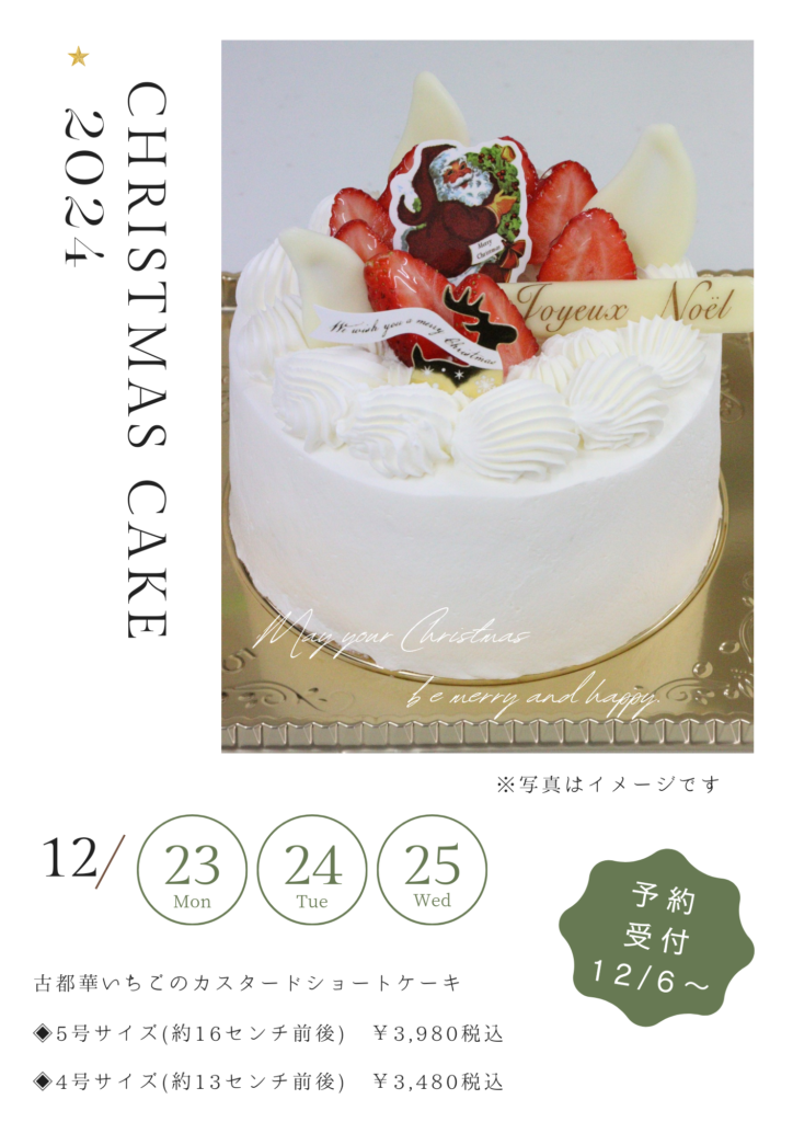 クリスマスケーキご予約受付。