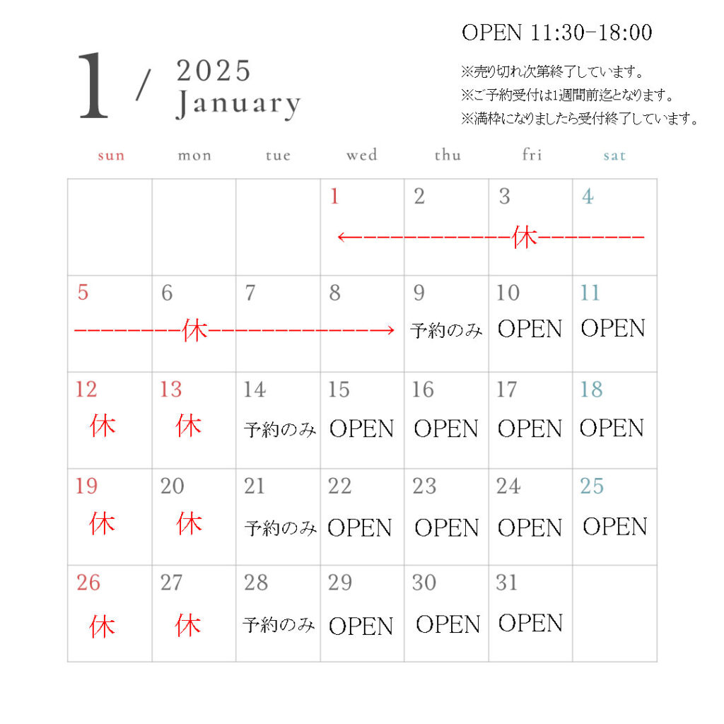 新年は1月10日(金)11:30より営業開始となります。