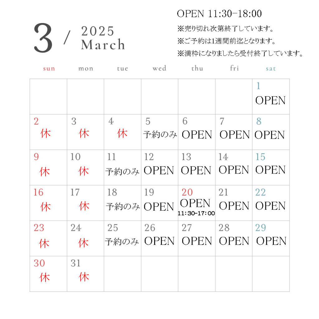 (ご予約が多い月はご希望の日にお受け出来ない場合もございます。)