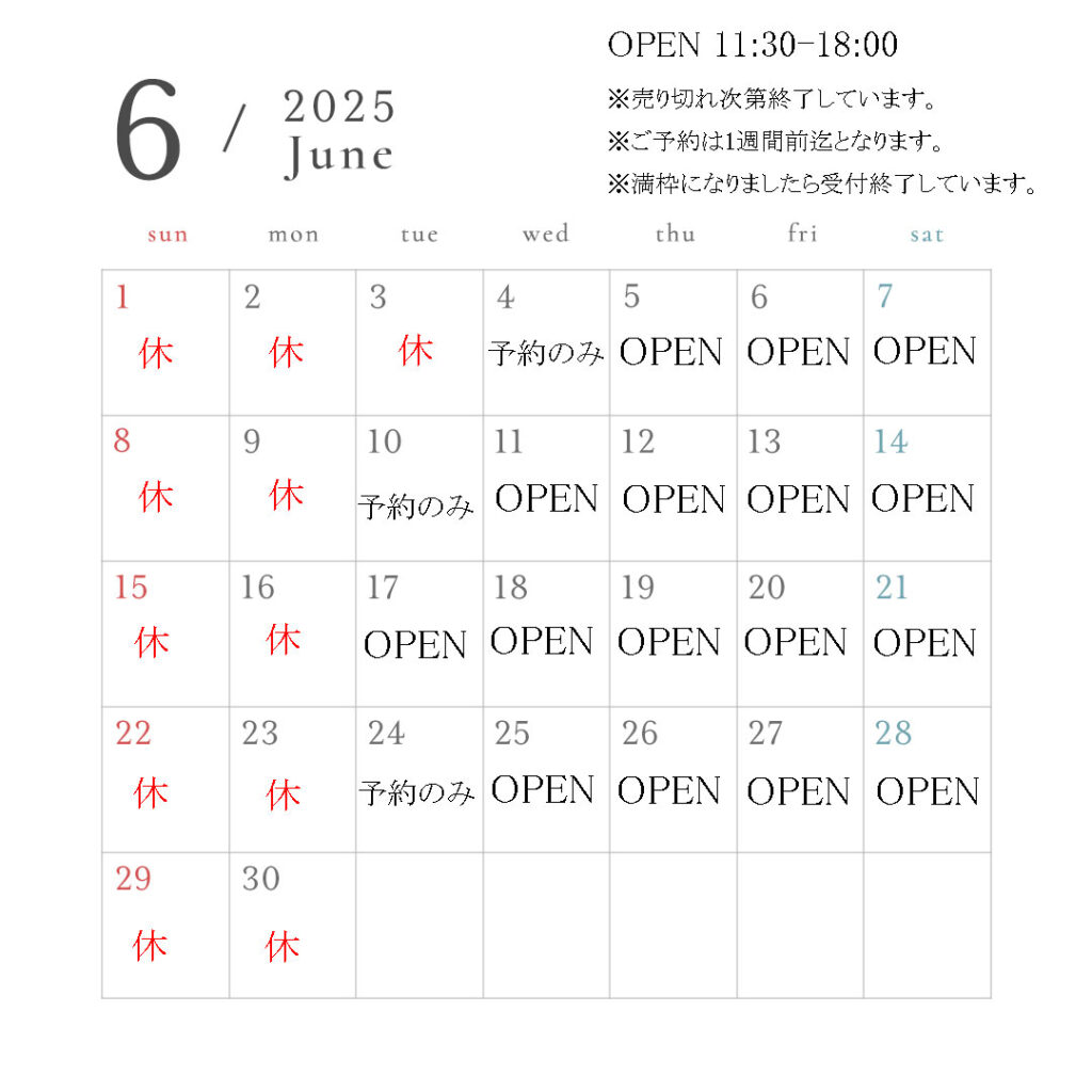 2025.6.1 店舗販売日カレンダー