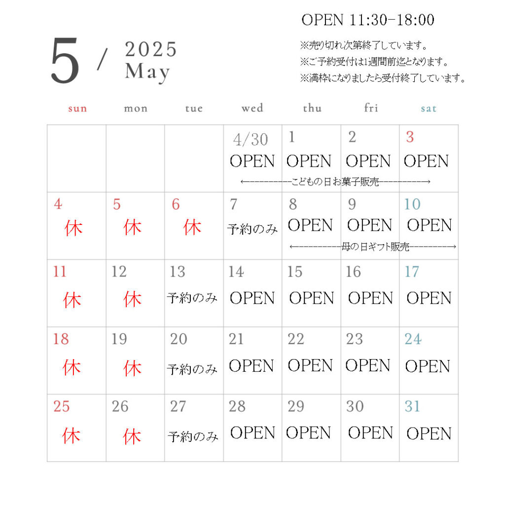 ※5月は第2週目が母の日ギフトの準備や事務作業などの為、