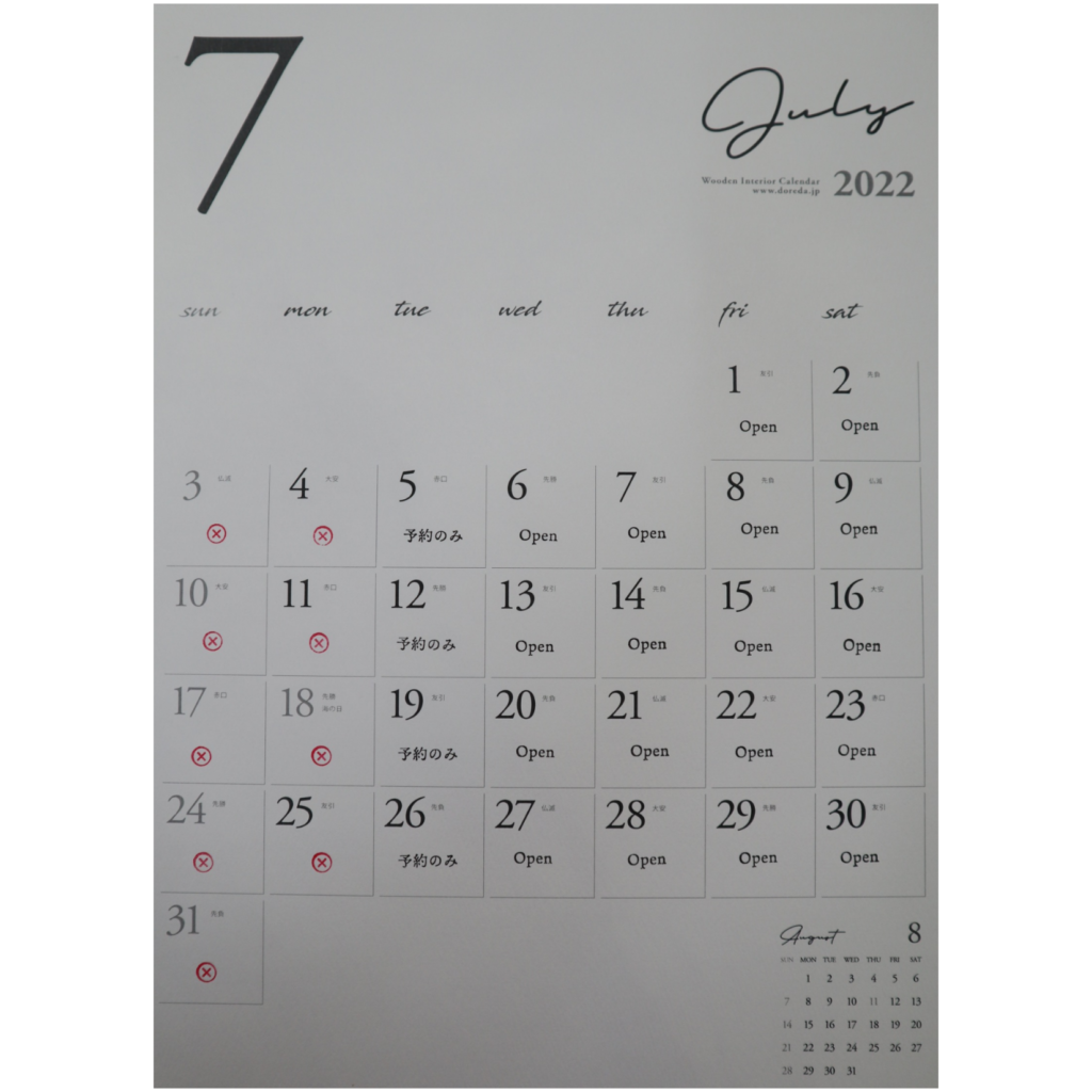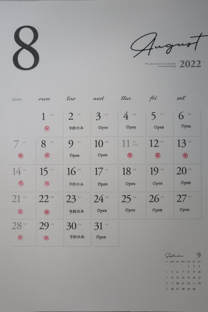 2022.8.1 店舗販売日カレンダー